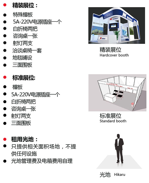 精裝展位:8800元/個 標準展位:7200元/ 個